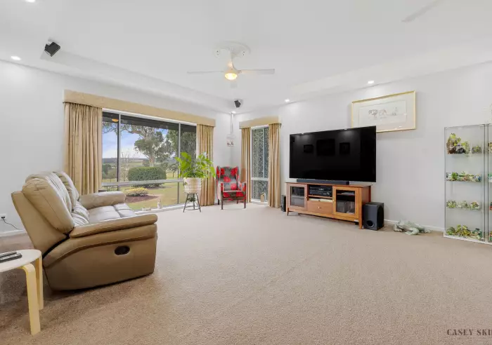 Outdoors, the gardens are a testament to the owners' love for the outdoors-with sweeping lawns, manicured garden beds, and an extensive vegetable garden ideal for self-sufficiency. Approximately 2.4 acres are securely fenced as a paddock, perfect for a horse or hobby livestock.