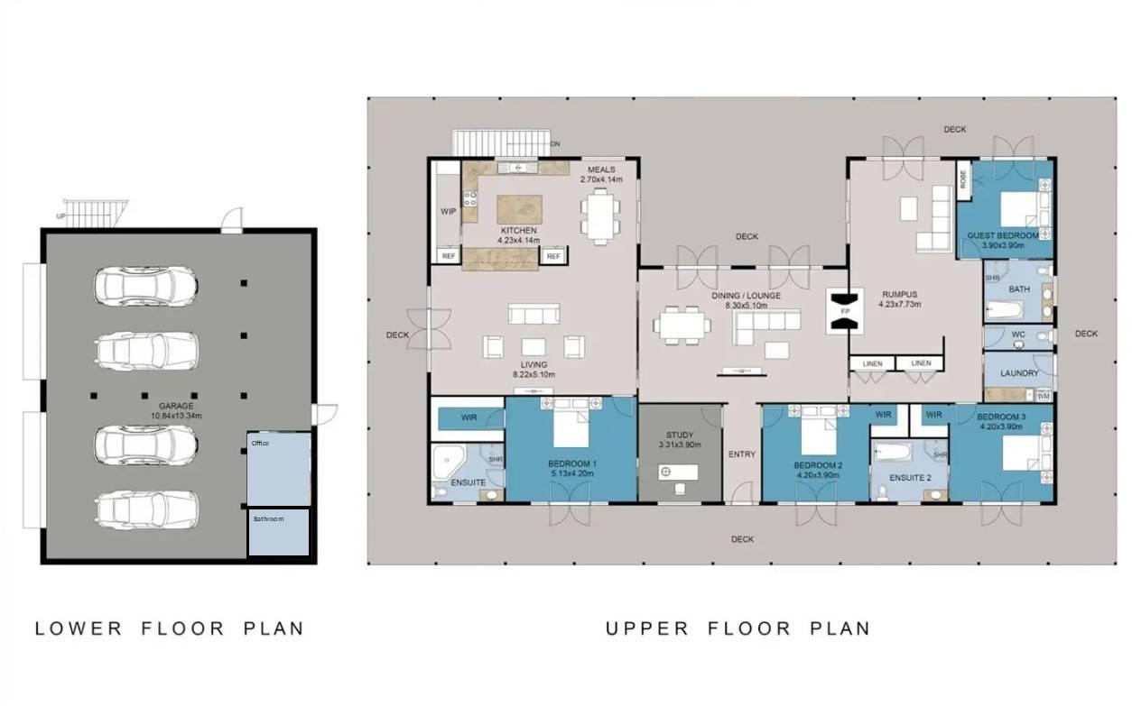 Accommodation is equally impressive, with four generously proportioned bedrooms, most with ensuites and walk-in robes, complemented by a private study and extensive storage throughout. The lower level comprises two double garages with workshop space, additional storage rooms, a hobby room and bathroom, further elevating the home's versatility and functionality.
